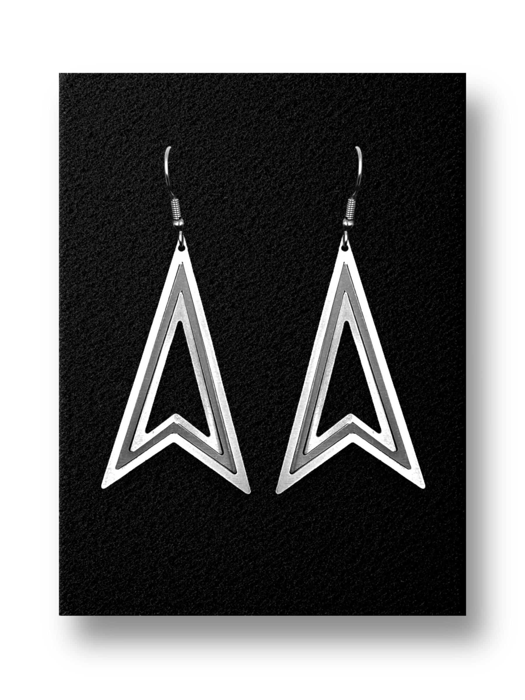 Handmade jewelry Illusion Arrow Earrings made of surgical stainless steel with hypoallergenic nickel-free hooks and three-dimensional steel arrow- shaped elements . Impressive earrings designed with a unique 3D technique. With every movement the jewelry reflects the light, creating a sparkling visual effect and an unforgettable look. Elegant everyday jewelry!