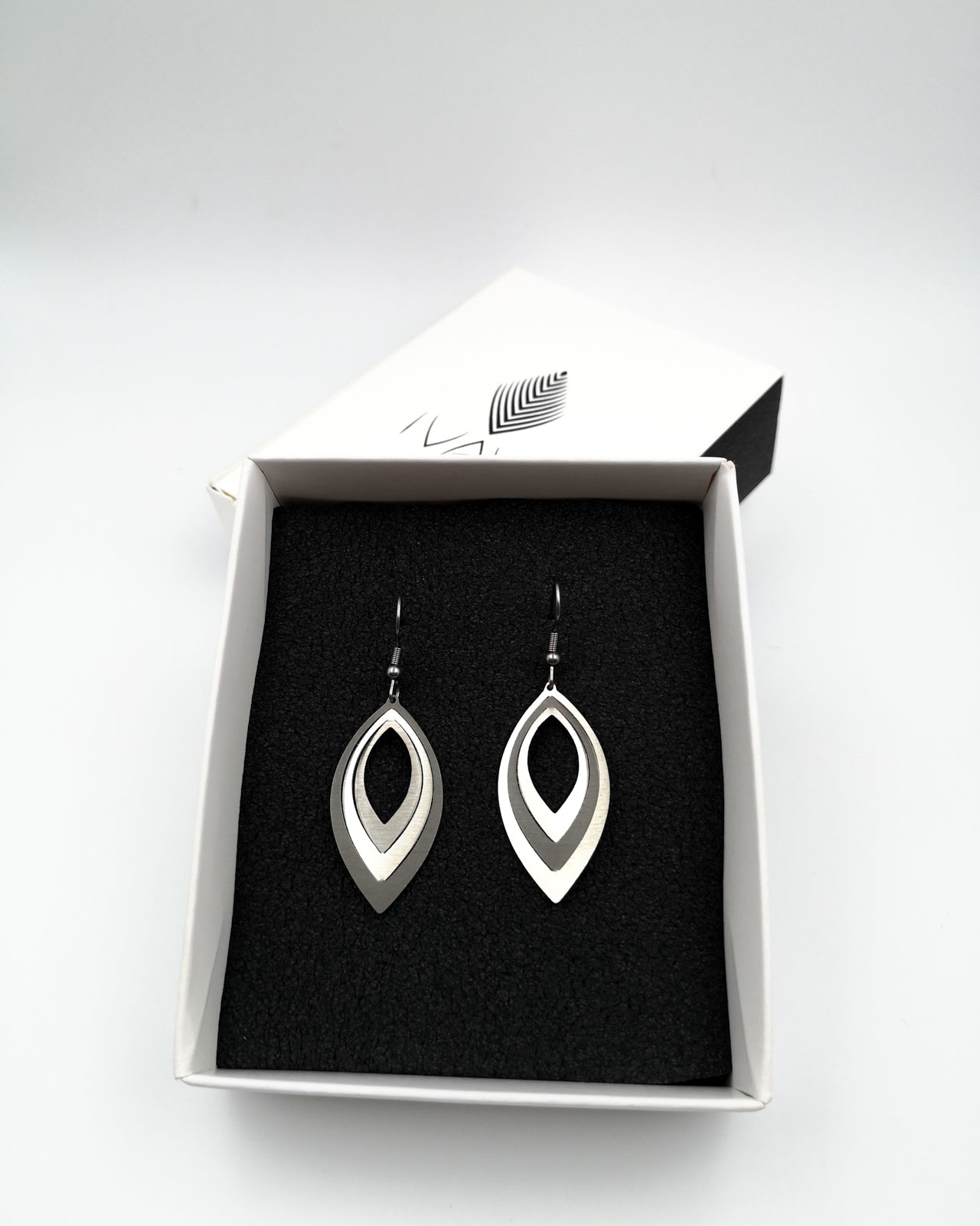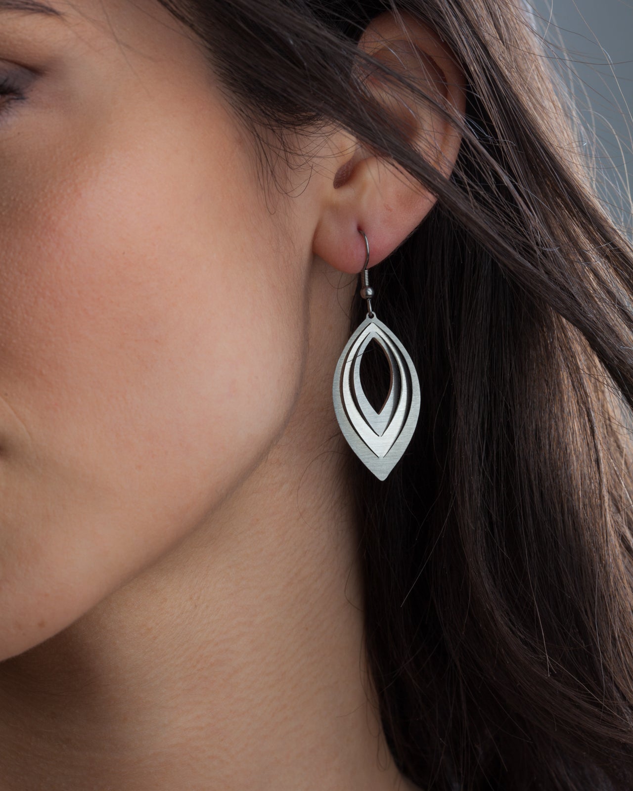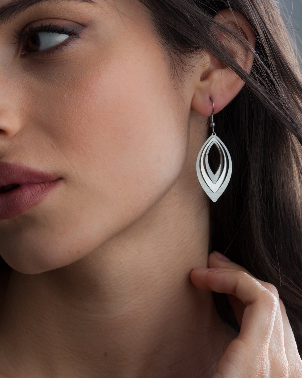 Χειροποίητο κόσμημα Σκουλαρίκια Elegant Leaf mini από ανοξείδωτο χειρουργικό ατσάλι με υποαλλεργικά γαντζάκια χωρίς νικέλιο και ατσάλινα τρισδιάστατα στοιχεία σε σχήμα φύλλο. Εντυπωσιακά σκουλαρίκια σχεδιασμένα με μοναδική 3D τεχνική. Με κάθε κίνηση σας το κόσμημα αντανακλά το φως δημιουργώντας ένα λαμπερό οπτικό εφέ και μια αξέχαστη εμφάνιση. Ένα διαφορετικό εντυπωσιακό καθημερινό κόσμημα!